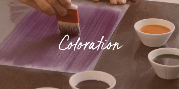 - Les préparations colorées à base de beurre de cacao sont idéales pour la pulvérisation dans les moules avant moulage ou l'application au pinceau, disponibles en plusieurs couleurs comme l'orange (à base de radis, cassis, pomme, carthame et citron), le rouge (radis, cassis, pomme) ou le violet (patate douce, radis, cerise, extrait de spiruline).