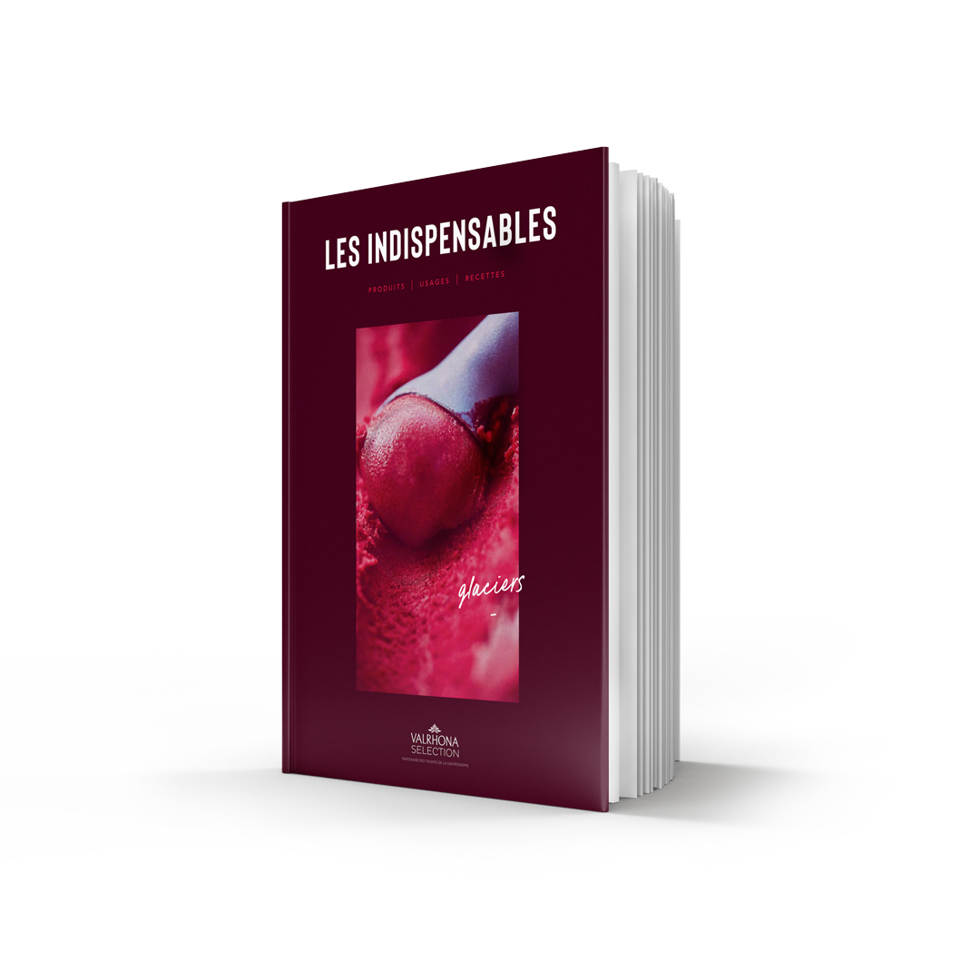 (Re)découvrez vos basiques et innovez grâce aux recettes de l’École Valrhona, réunies dans le livret des Indispensables de la Glace.
